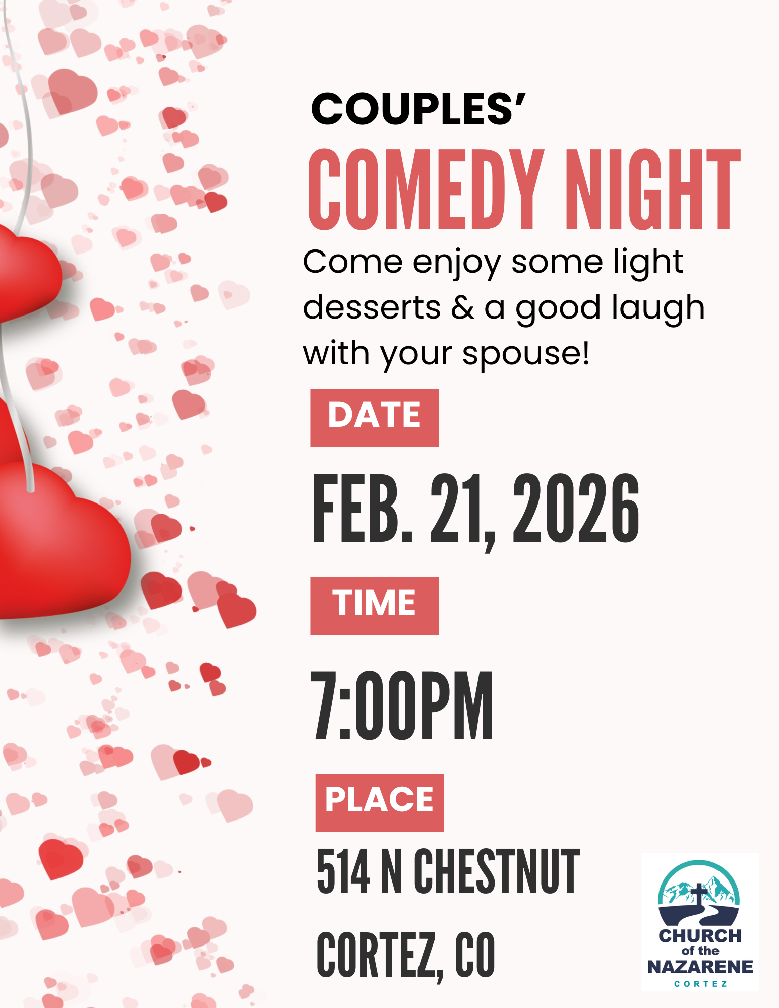 Come anytime New Year’s Eve from 4pm on to play games and enjoy snacks. At 11pm we will usher in the New Year with praise, worship, and prayer.